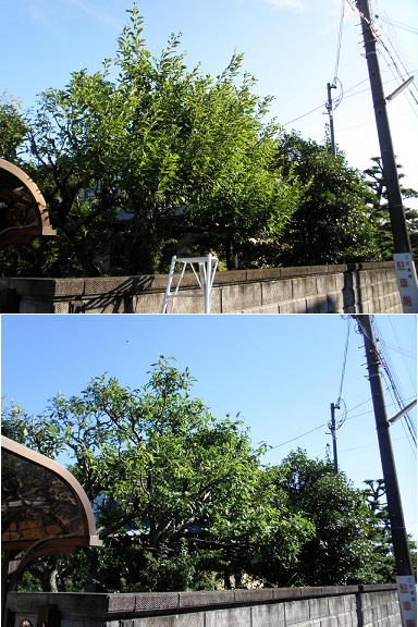 昨日と今日の早朝に李(すもも)の収穫を兼ねて剪定作業を行った。太陽が昇る前の涼しい時間で終わらせようとの魂胆。5時過ぎに起きて準備。5時半頃から開始。
