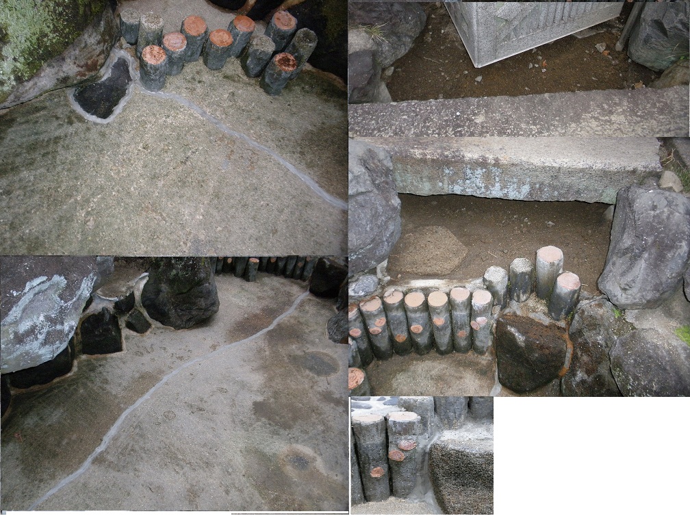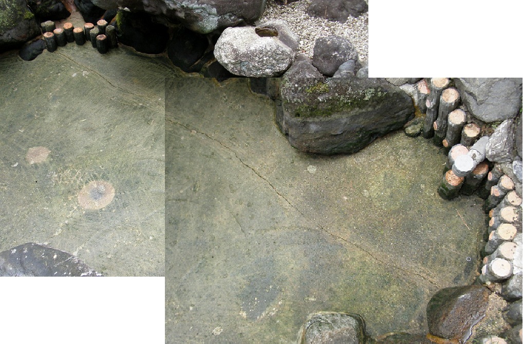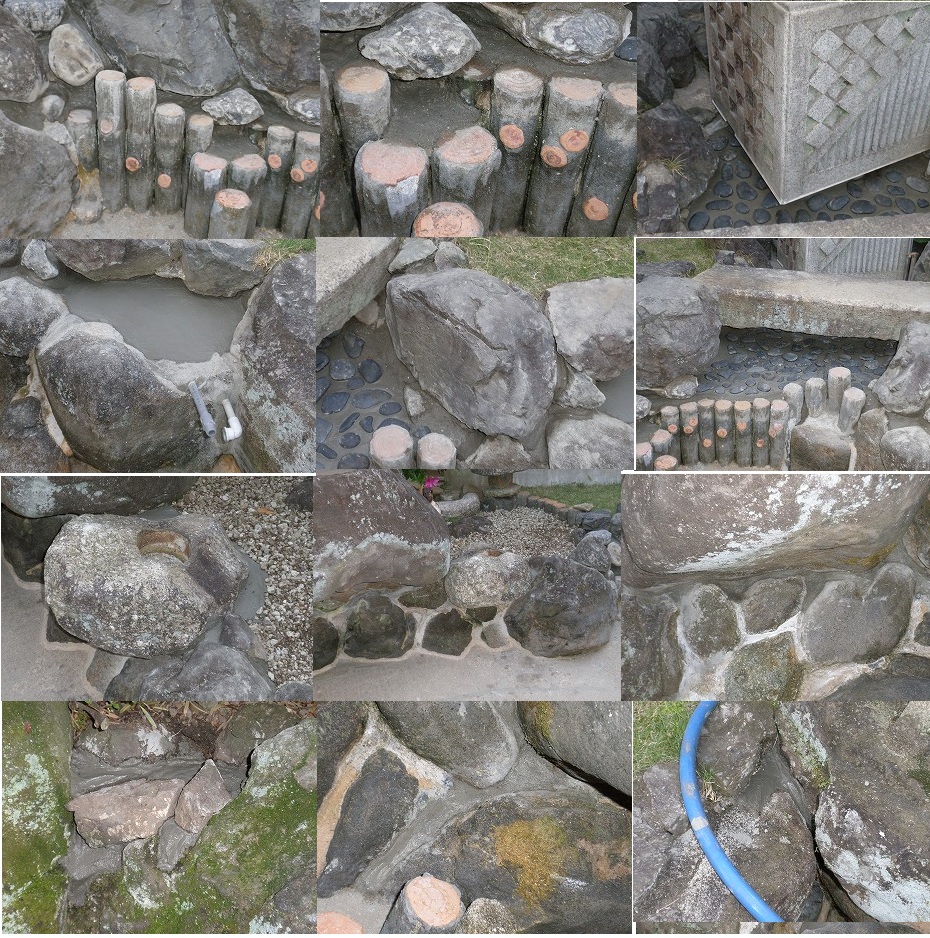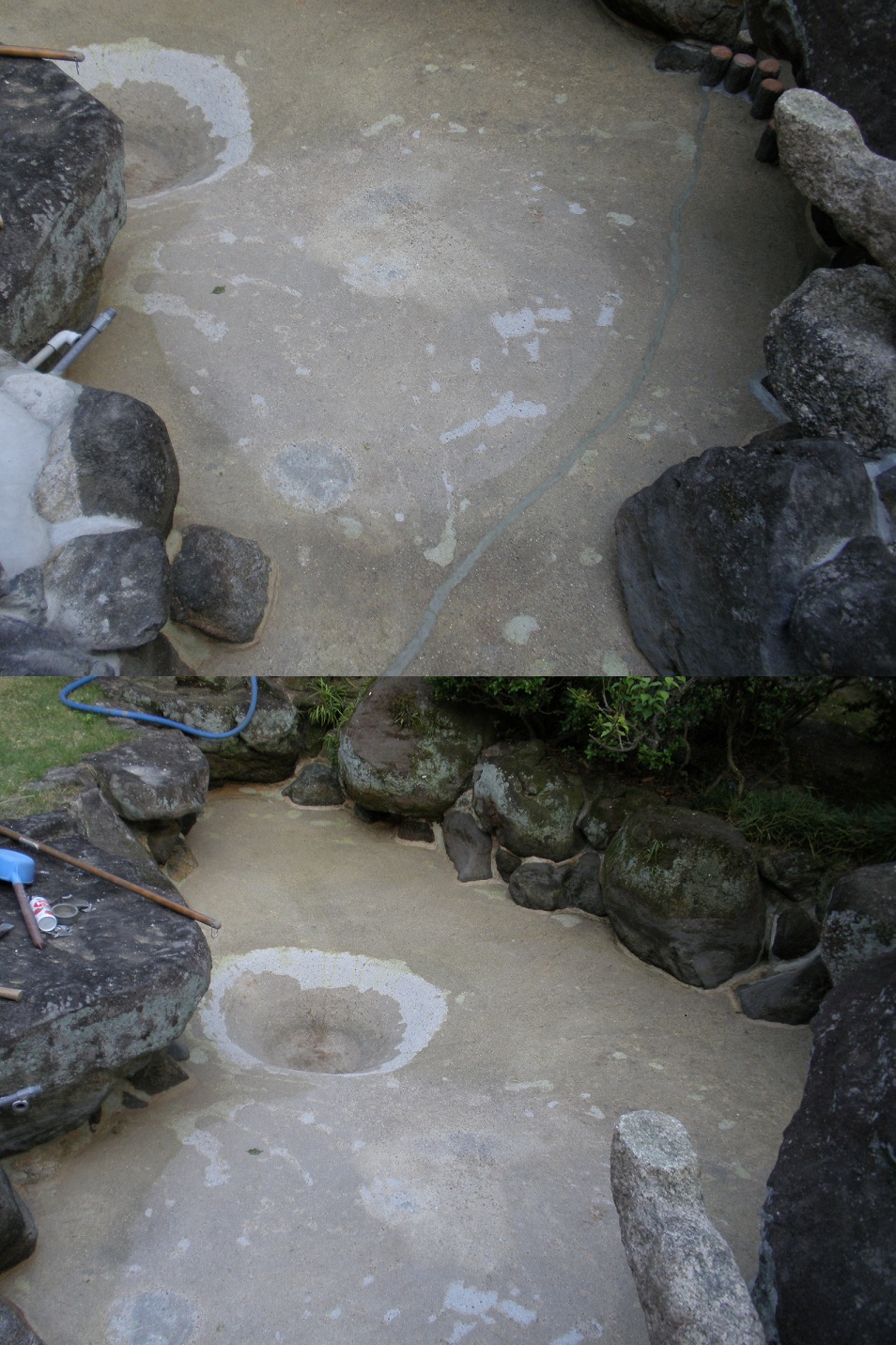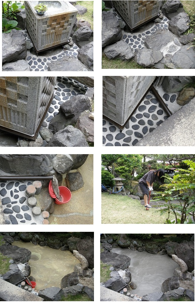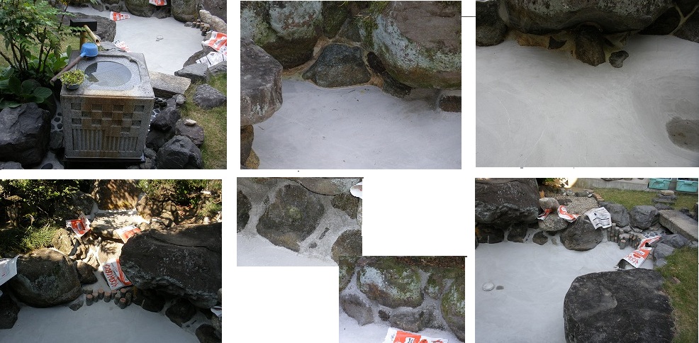 池の修理(手水鉢の水回り、セメント接着剤の塗布)