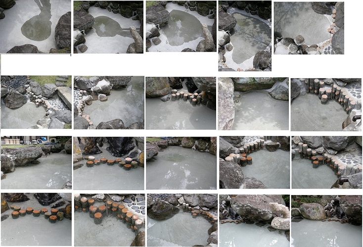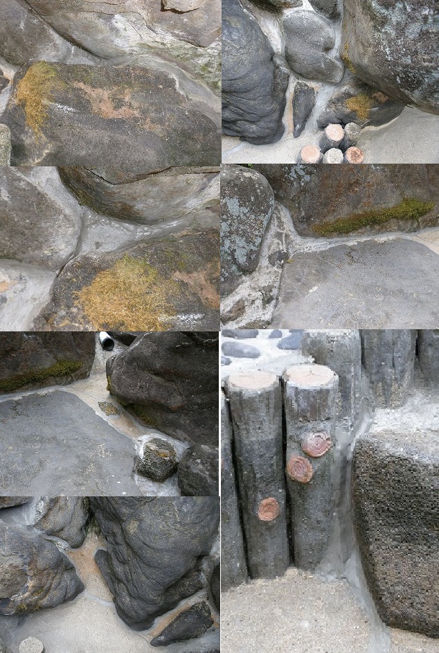 池の補修によくつかわれる二液性のコーキング剤をネットで購入し、亀裂の筋に埋めていく。二つの丸缶から同量の固形物を取り、手で捏ねていく。手にべったりとついてうまくいかない。説明書を見ると掌にしっかりと水付けて捏ねると捏ねやすいと書いてある。バケツに手を浸し、しっかりと捏ねていくとちょうど粘土細工のようになる。細く伸ばし、溝の貼り付ける。亀裂が終わると、石とセメントの間にも帯状に伸ばして貼り付けていく。