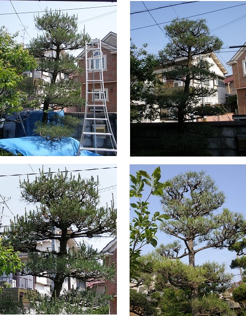 前回に続いて松の選定である。11日に久しぶりに剪定を行った後、12日は熱化が入ったのか、一日倒れていた。熱射病化も。 今回は休みを取りながら、注意深く行うこととする。 当初は、玄関前の松だけにする予定が、割と早い時間で終わったことと今日で松の剪定を終わらせたいのとで、秘話の松も一気に片づけてしまった。これで春は終わりか・・・