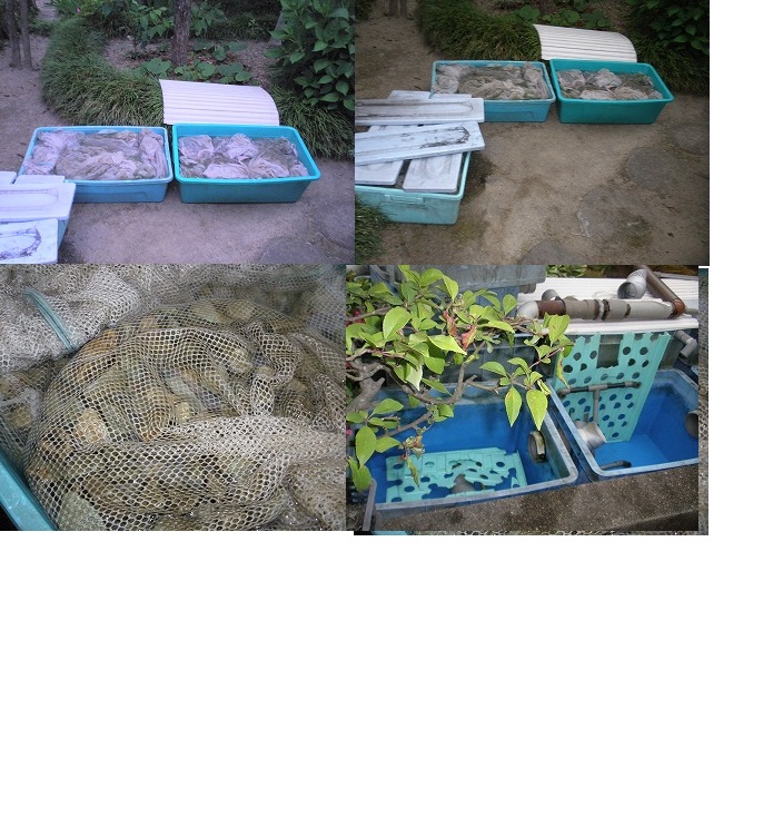 セメントのあく抜きは、放置しておくと2から3週間ほどかかるようである。数回の水替えを伴うため、薬品にてあく抜きを行う。 アクアマリンというその筋では有名化薬品であるが、薬品会社は製造をやめ、現在市場に流通しているものが最後となる。