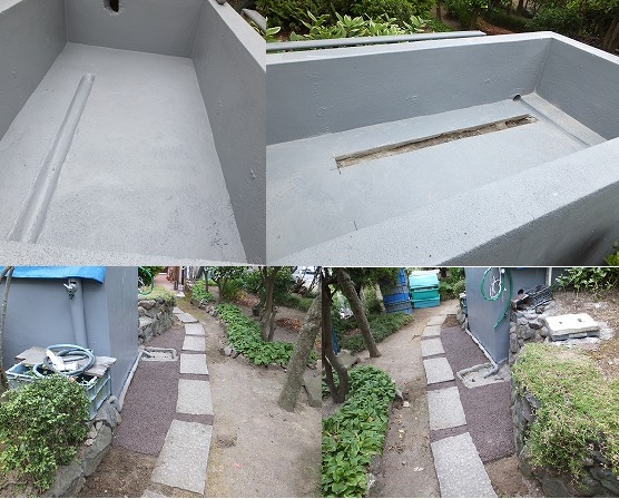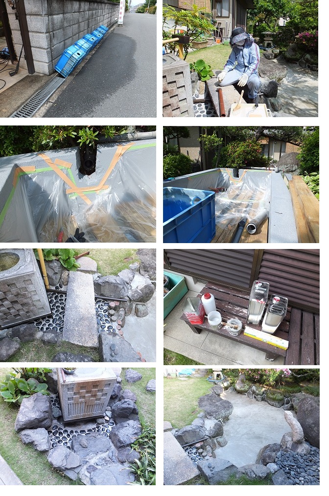 池ペイント塗2-2、手水鉢周りの塗装