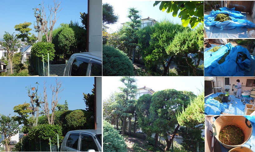 明日は、久しぶりの雨の予報。今日剪定をして明日は休みと計画し実行する。 庭の奥にすくっと立っている三本の木。時間的に手ごろと判断し選定を始める。12尺の三脚を出していつも通りの剪定。問題なく順調に進む。剪定は予定通り。剪定と同じくらい時間のかかるのがあと始末である。