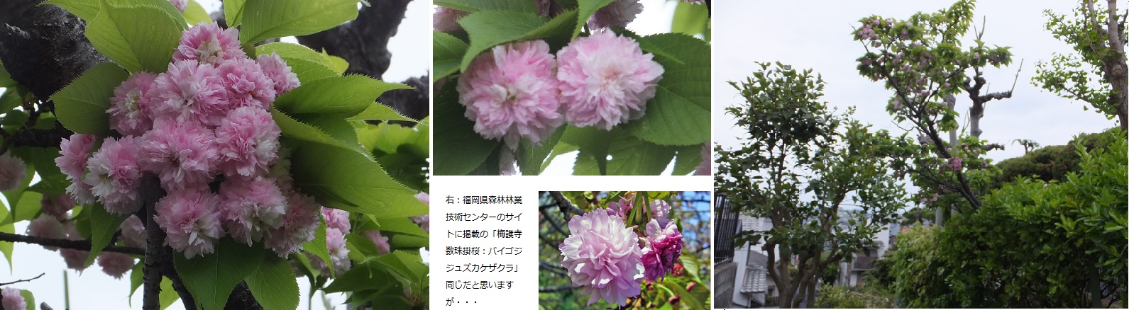 奥さんから「満開だよ」と聞かなければ気が付かないところ。 しかも「珍しい桜かも」と言われて、花を見ると、くっついた花弁がプードルのふさふさとした毛に見える。