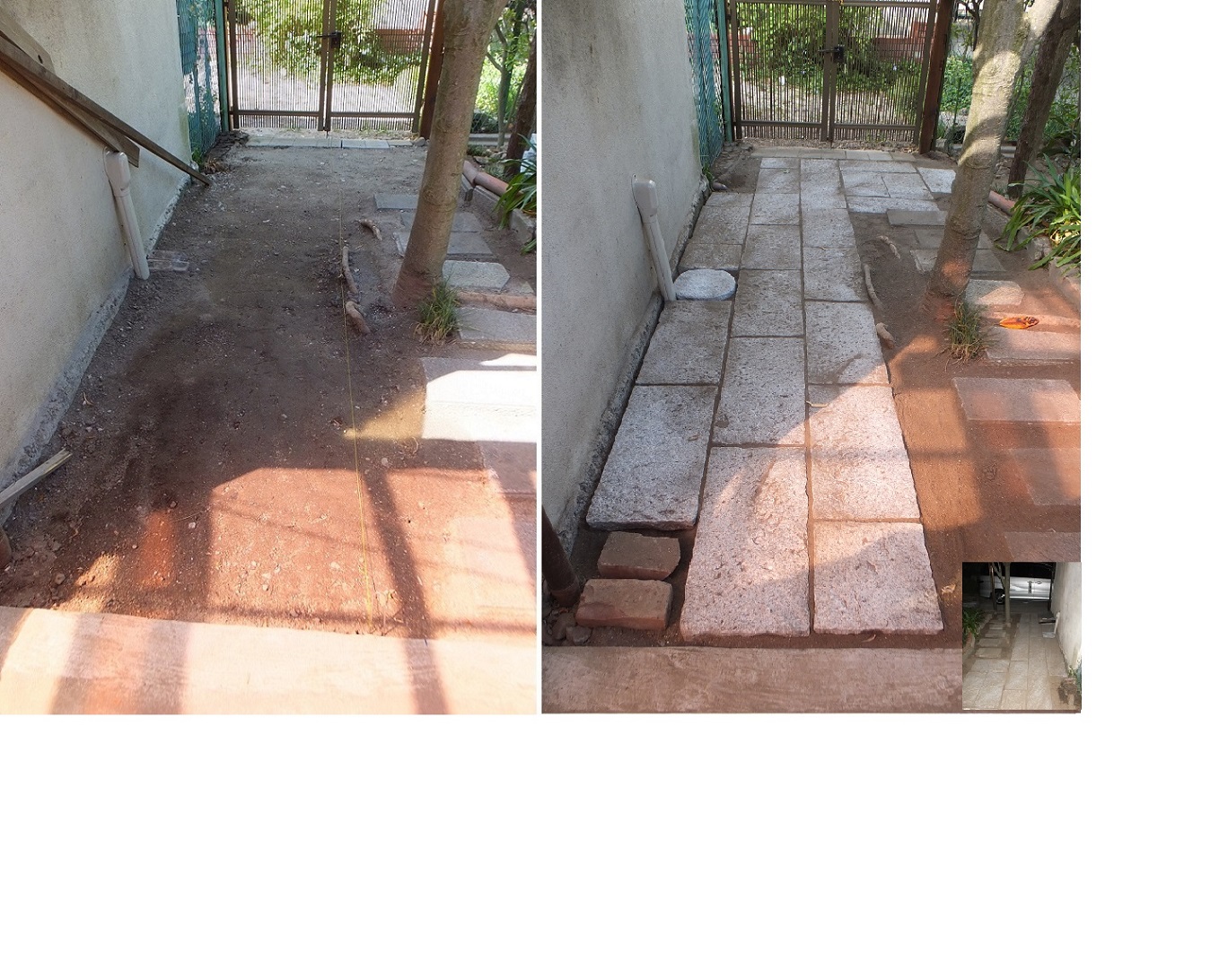バイク置き場の移設工事。しばらく中断していたが、本日、一部敷石の加工が残っているが、どうにか完成した。