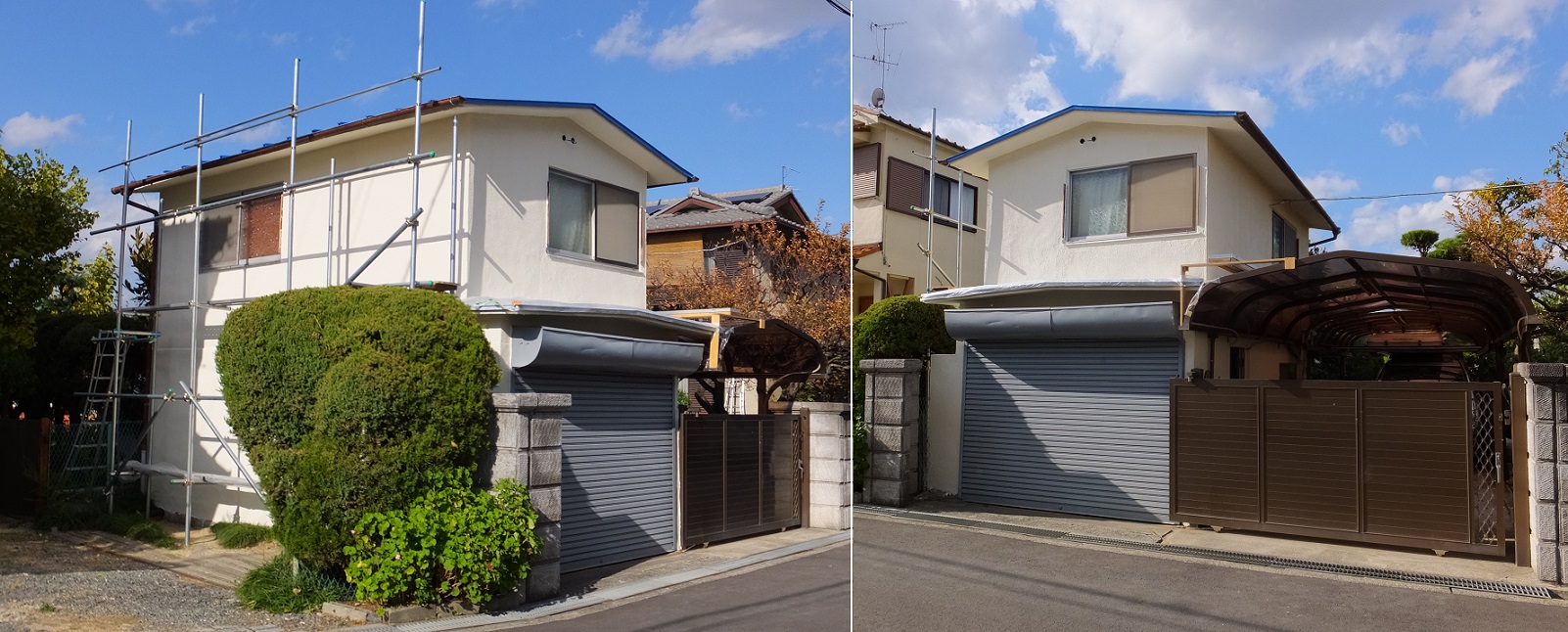 外壁・屋根の塗り替え 南面:塗膜の剥がし、コーキング 屋根:ケレン