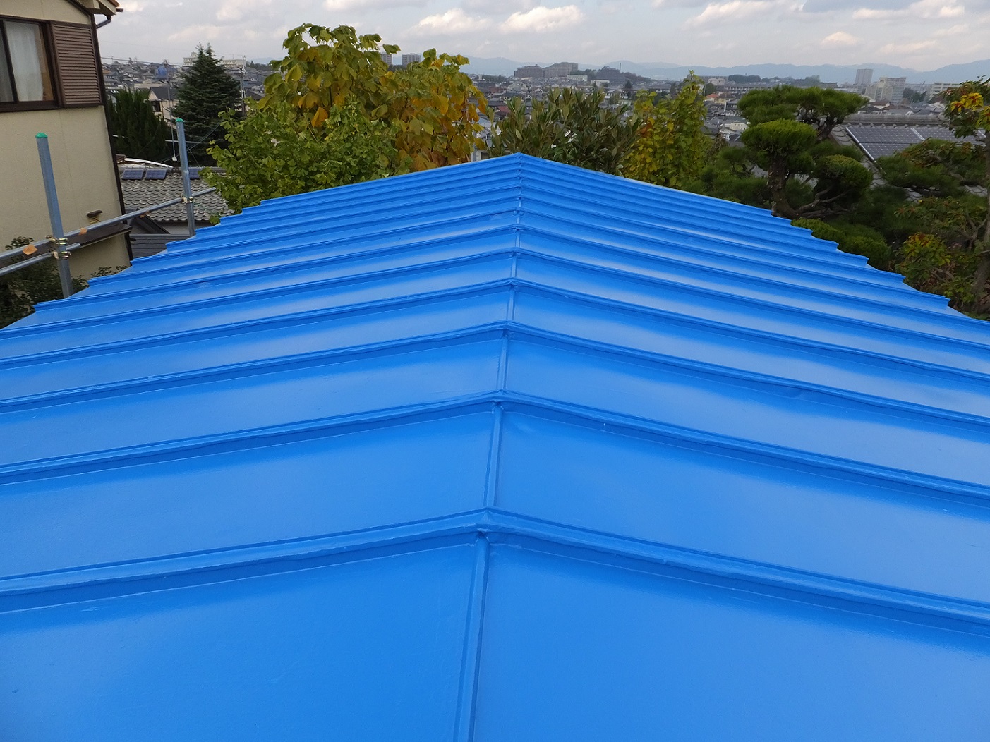 四苦八苦した屋根の塗り替えが完了した。前回は、塗り替え終わった時間が遅くて、流れてしまったが、そのあとも、塗った後、夜半に本格的な雨が到来して、一時どうなることかと思ったが、今日、ちょっとした塗り残しを筆で補筆?して完了となった。