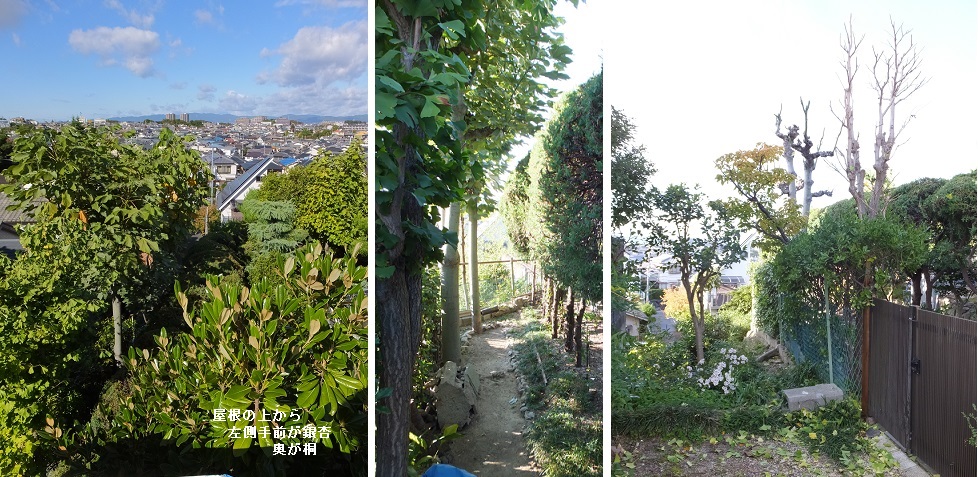 ほっておくと枯葉が落ちて後が大変な桐の木と銀杏の木をやっつけることに。
