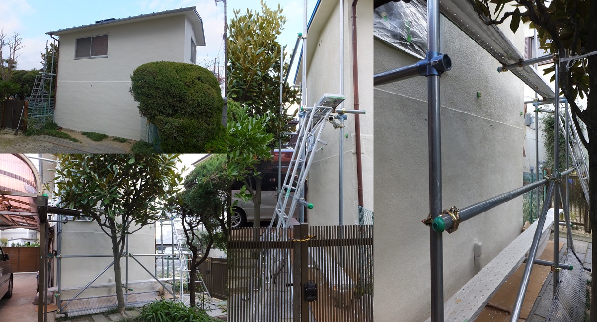 池の剪定で購入したこの足場。少し継ぎ足しをして外壁の塗替えで使用。また剪定の時期で、使用するため、これに合わせて塗り替えも進めてきた。