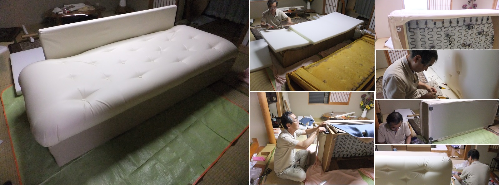 かなり使い込まれて、表生地が傷んでいるものの、その大きさから、昼寝をするにはうってつけのソファーを、ある機会で入手してしまった。 しばらくは、そのまま置いてあったが、このままでは場所をとるしということで、一念発起、分解を始めた。