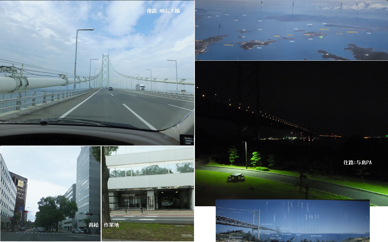 14日に高松で仕事をもらったが、作業用の道具持参があるため、車での移動とした。