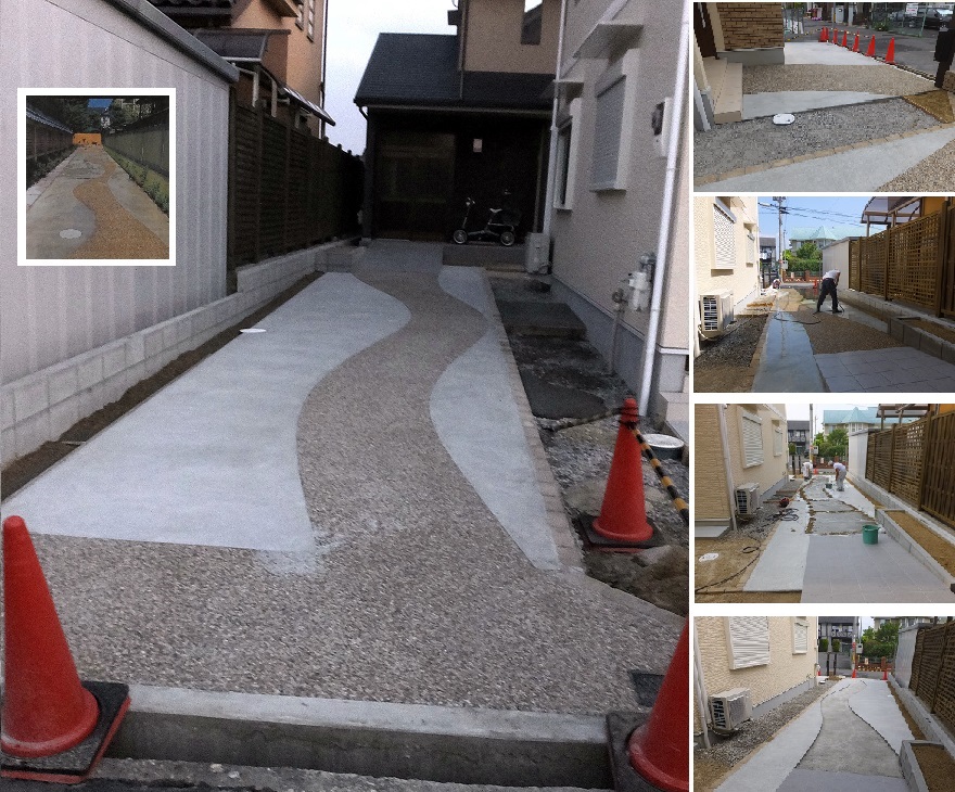 完成した石組に黒石を入れるため、その周りをセメントで固めた。一部の石組は十分に固定されていなかったこともあり、周りの土が入らないようにした。 翌日、セメントが乾いてから黒石を入れると景色が落ち着く。 雨が降ると黒石がますます黒くなり見栄えが良くなる。