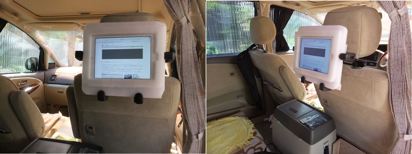 エスティマにiPadminiのサポーターを購入したが、iPad用でMiniは小さすぎて使用できないことがわかったが、そのまま設置しておいた。