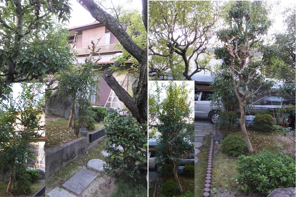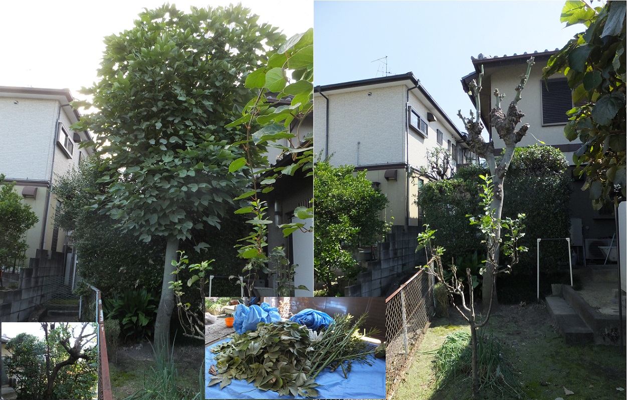 剪定:裏の桐の木・シャシャンボ・ヒサカキ