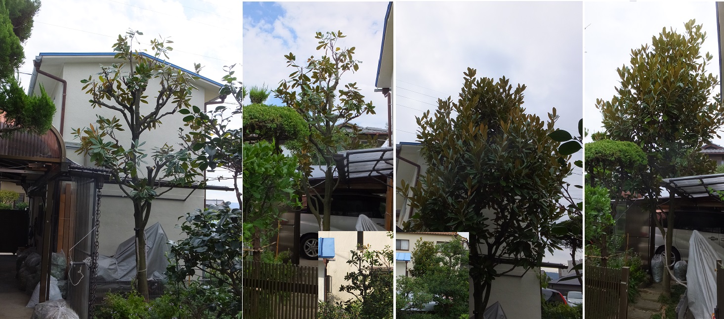 我が家の二番目に背の高いくろがねもち。 今年は背が高くて手が届かないため、一回り小さくなるような剪定をした。