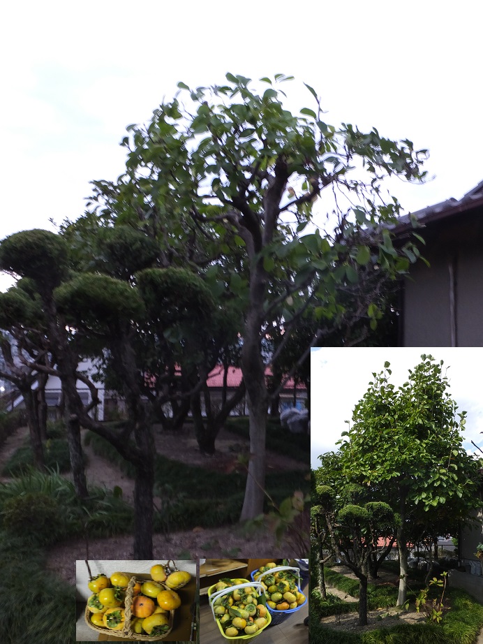 はくもくれん・・これからの時期、葉が茶色くなりすべて落ちてしまう。ばらばらとその都度掃除をしなくてはいけないがたいへんだと我が家の御大は気を根元から切ってしまえとのお達し。 春一番に花輪先ほころぶのにそんなもったいないことは断じて許さない。以前より背が高く生い茂っていたので。今回は二回りほど小さく強剪定を行った。 隣にある柿は、、少し早いが一気に色ずく為収穫を行った。