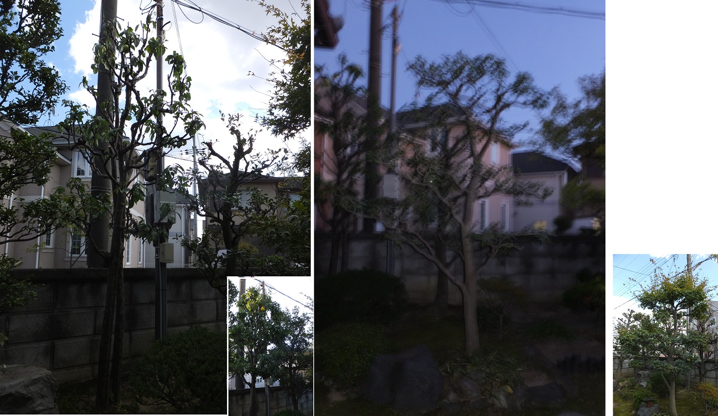 庭の奥の一角に、4種類の木がこじんまりと植わっている。