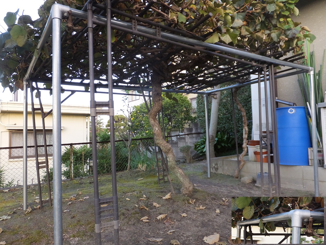 先代より使用していたキュウイの棚がさびが来てかなり弱くなってきた。接着もはがれ、一部被膜も破損している。
