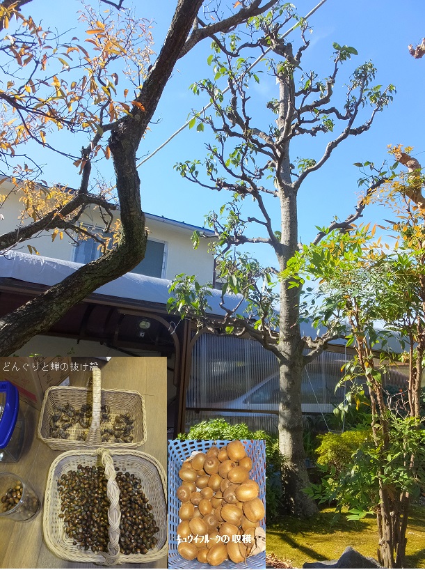 どんぐりを楽しみにしていた孫の帰阪で、剪定の最後が来た。 今年の11月は、温かく、太陽が出ていると汗ばむくらいである。