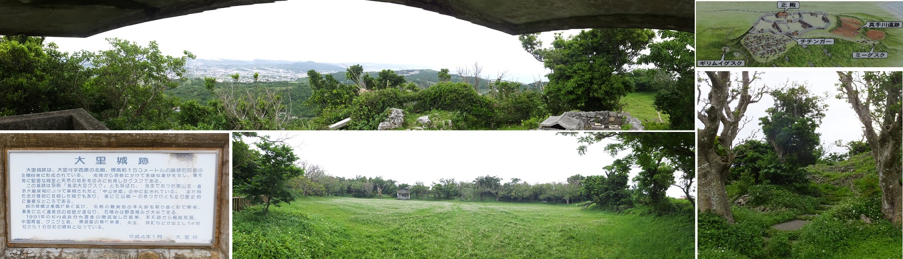 史跡はおよそ東西200m、南北100m、面積が20,000u以上もあって、県内でも有数の規模を誇るグスクです。 グスクの北側、台地縁の断崖を背にして一の郭、そこから南東方向へ二の郭、三の郭と放射状に広がっています。グスクの中心部である一の郭は、一段高く基壇上に造成された正殿跡と、その前面に御庭と考えられる平場から構成されています。過去の交差によって建物の柱を支えるための礎石が数箇所から確認され、島添大里按司の住居である正殿規模は約22m×13mもあり、幾度も改築が行われたと考えられています。場内には一の郭を囲む城壁のほか、数箇所に城壁が残っており、さらに発掘調査によって、採石を免れた城壁の基礎部分が地中より確認されています。 出土遺物には、土器やカムィヤキ・中国正陶磁器・盗難アジア製陶磁器・日本製陶磁器・鉄器・石器・装飾品・古銭・自然遺物などが多くの文ものがみられ、往時の繁栄ぶりが窺えます。 平成21年2月24日 沖縄県南城市教育委員会