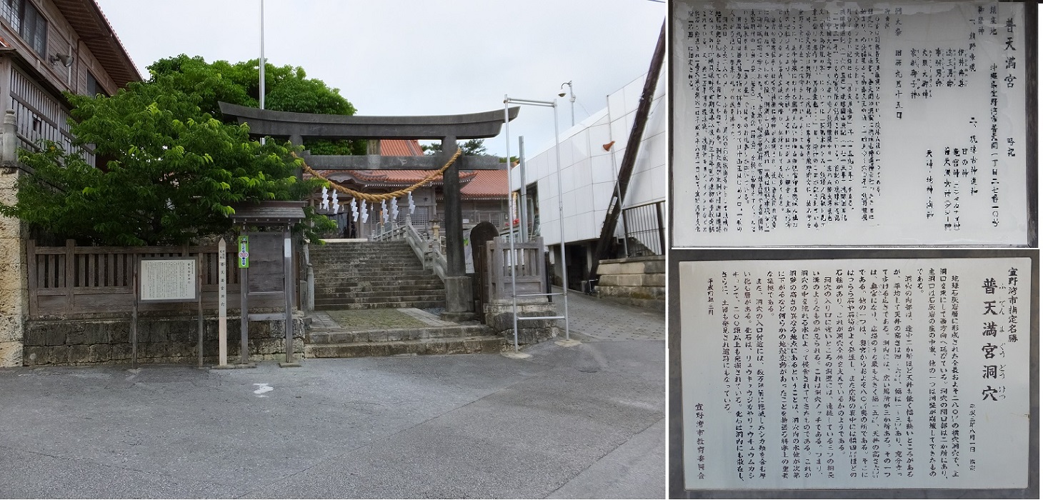 1500年頃この近くにある普天間洞穴の中に祀られた琉球古神道神と熊野権現(和歌山熊野?)と合祀したと伝えられる。