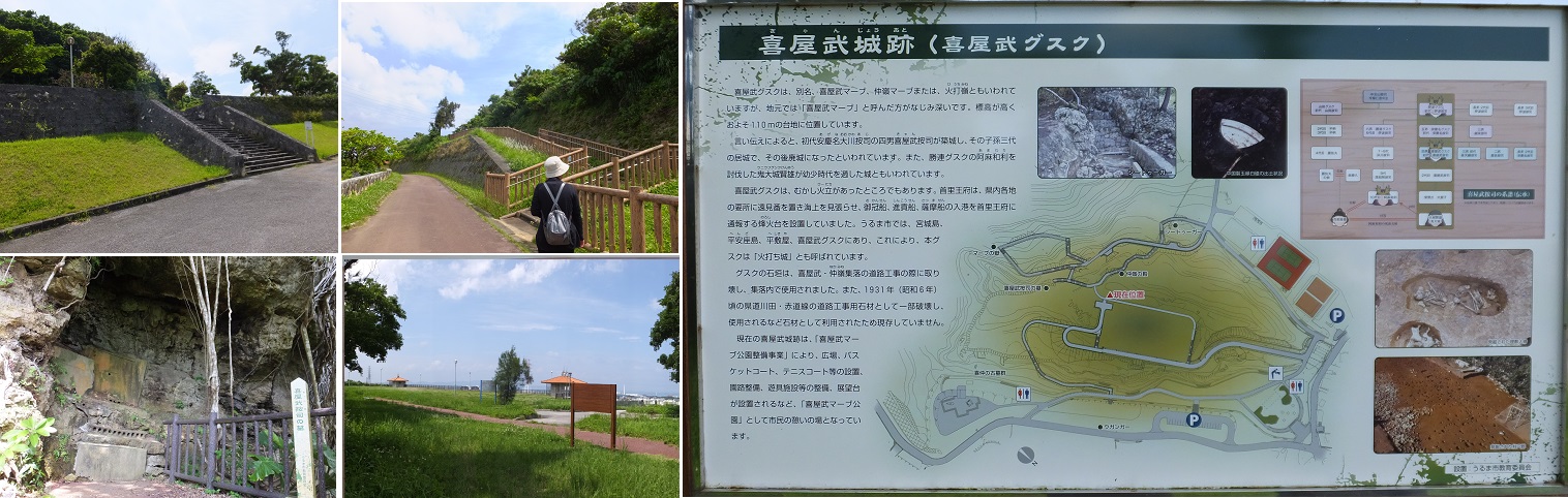 喜屋武マーブ公園に隣接した城址である。北東部の駐車場に止め、公園の展望台を目指す。きれいに石積みされた公園だが、城跡は西、南側に分布しているようだ。