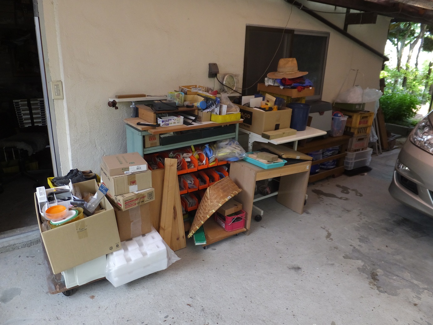 カーポートに出した道具や機器、部材の整理整頓をする。