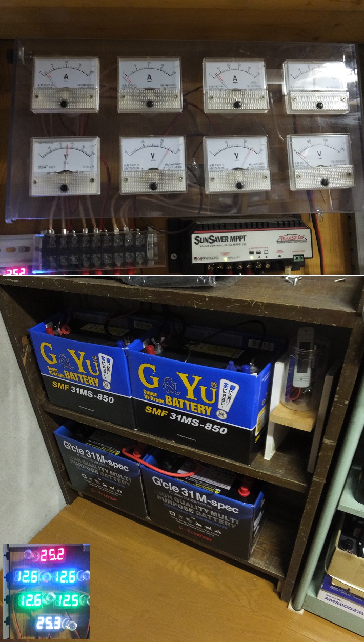 池のポンプを、昼間だけは太陽光発電で動かそうとはじめ、Panasonicの240Wパネルを手に入れてはじめたがのが2013年4月。約3年が経過する。その間パネルを増設するも、バッテリーの増強はなく、朝10時から16時までの時間限定で動かしてきた。
