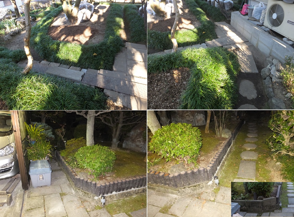 八朔やキュウイ棚に行く柿の木の下の通路とみ時や低くなったいるのが以前より気になっていたのだが、やっよ重い腰をあげ、改善することにした。秘話の通路のブロックの土止めを擬木にかえたが、そのブロックが余ったため、それを並べてかさ上げをした。