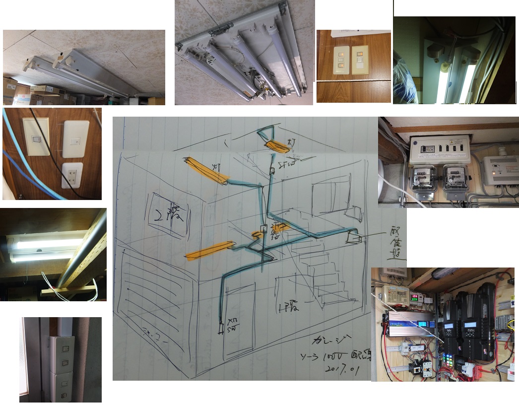 ガレージ、ソーラー発電100%運用の一環で、電灯線の配線工事が終わった。