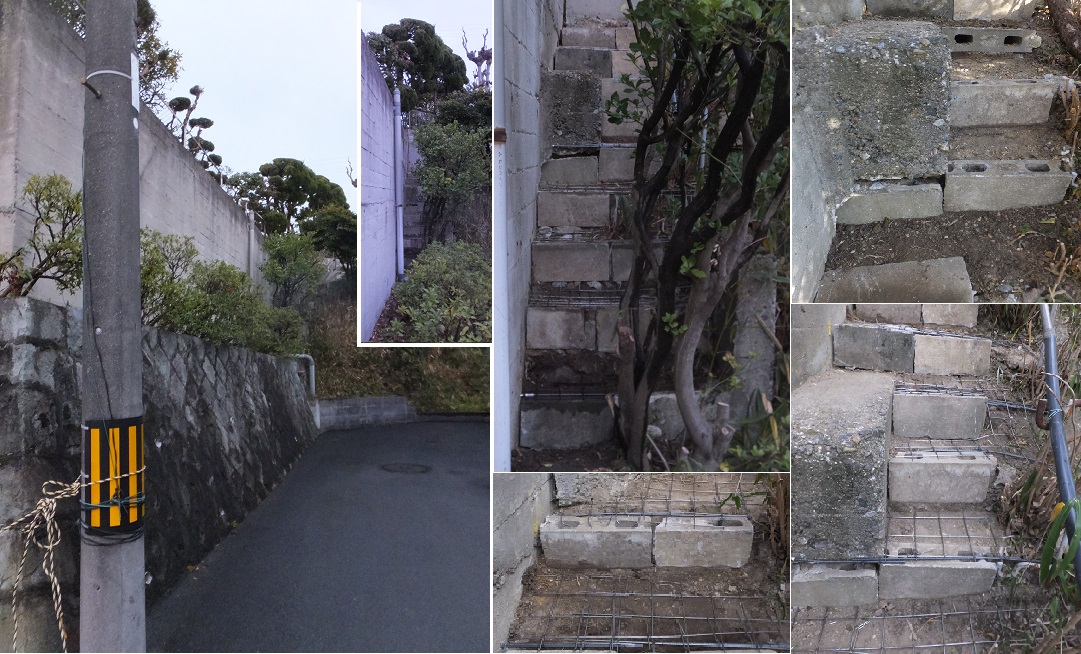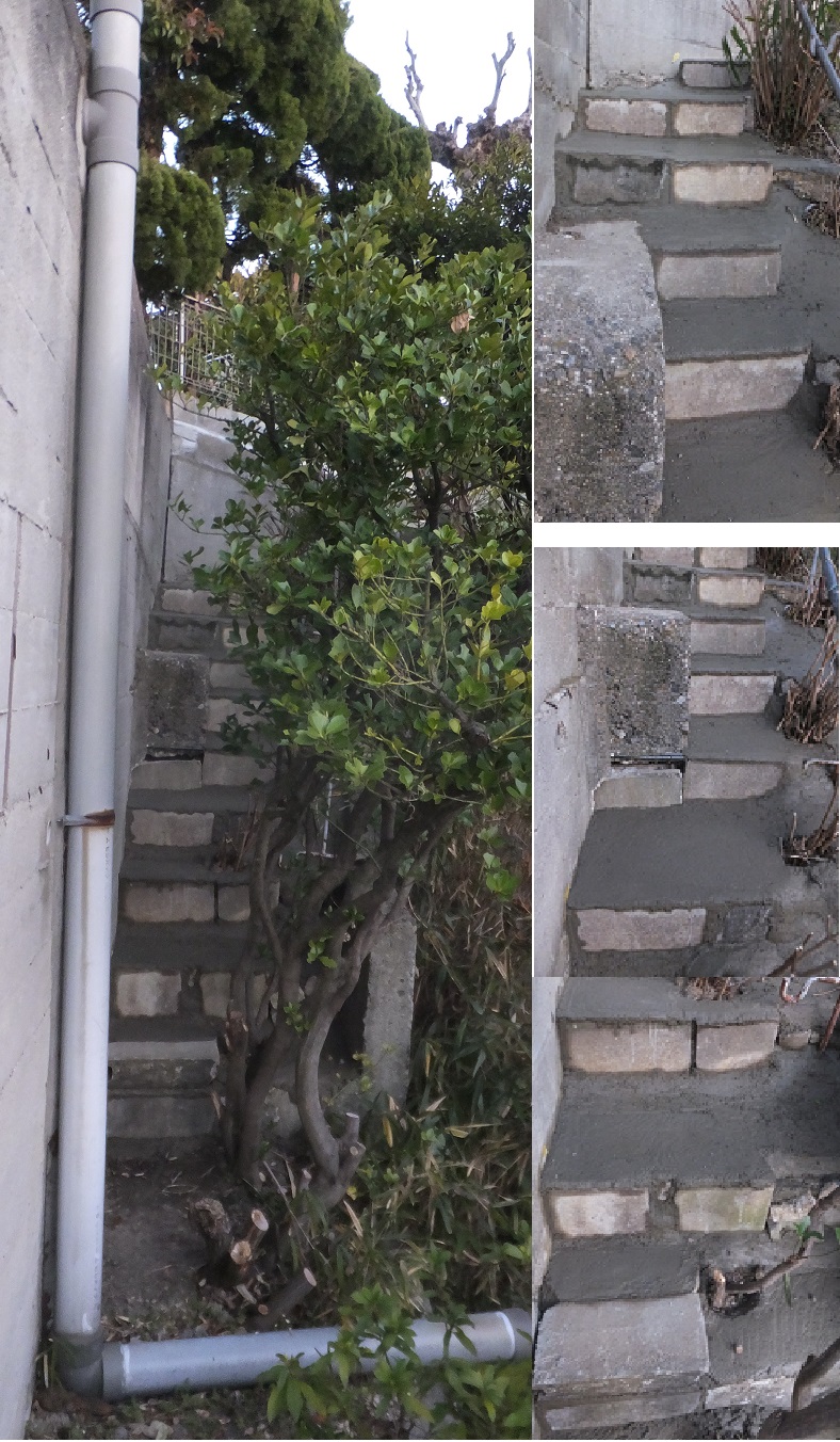 今年は、その亀裂をモルタルで穴埋めする予定なのだが、そこまでの階段が危なっかしい状態なので、整備をすることにした。