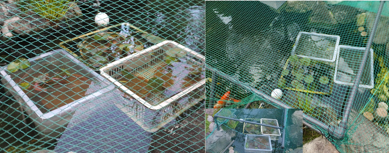 古いプラケースを活用し、水面5mmほど出るように足の長さを調整。 従来のものと新たに2個都合3個になる。