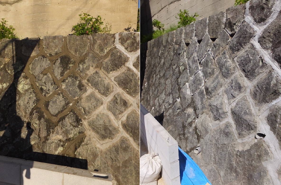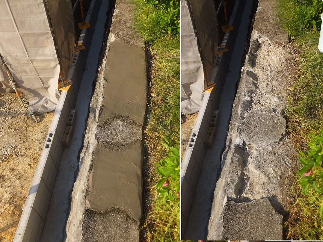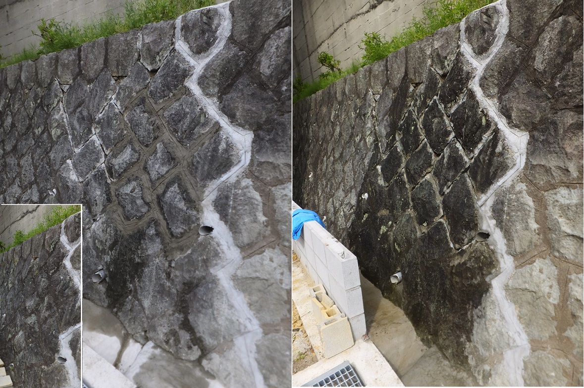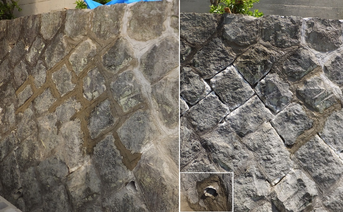 右側、バケツ一杯のモルタルで補修が終わったところ。