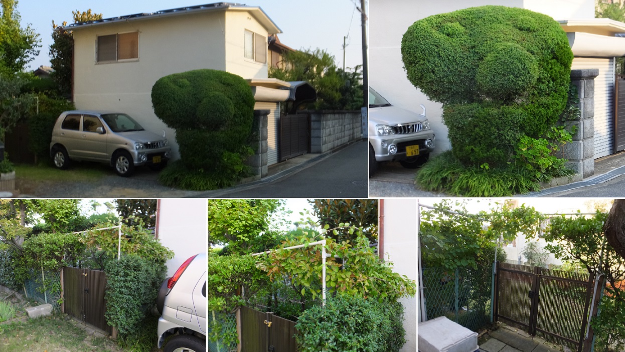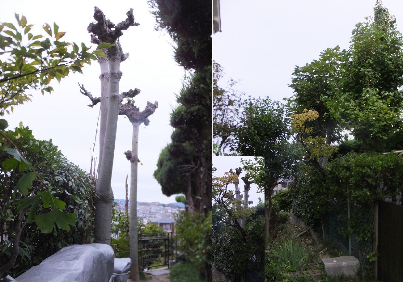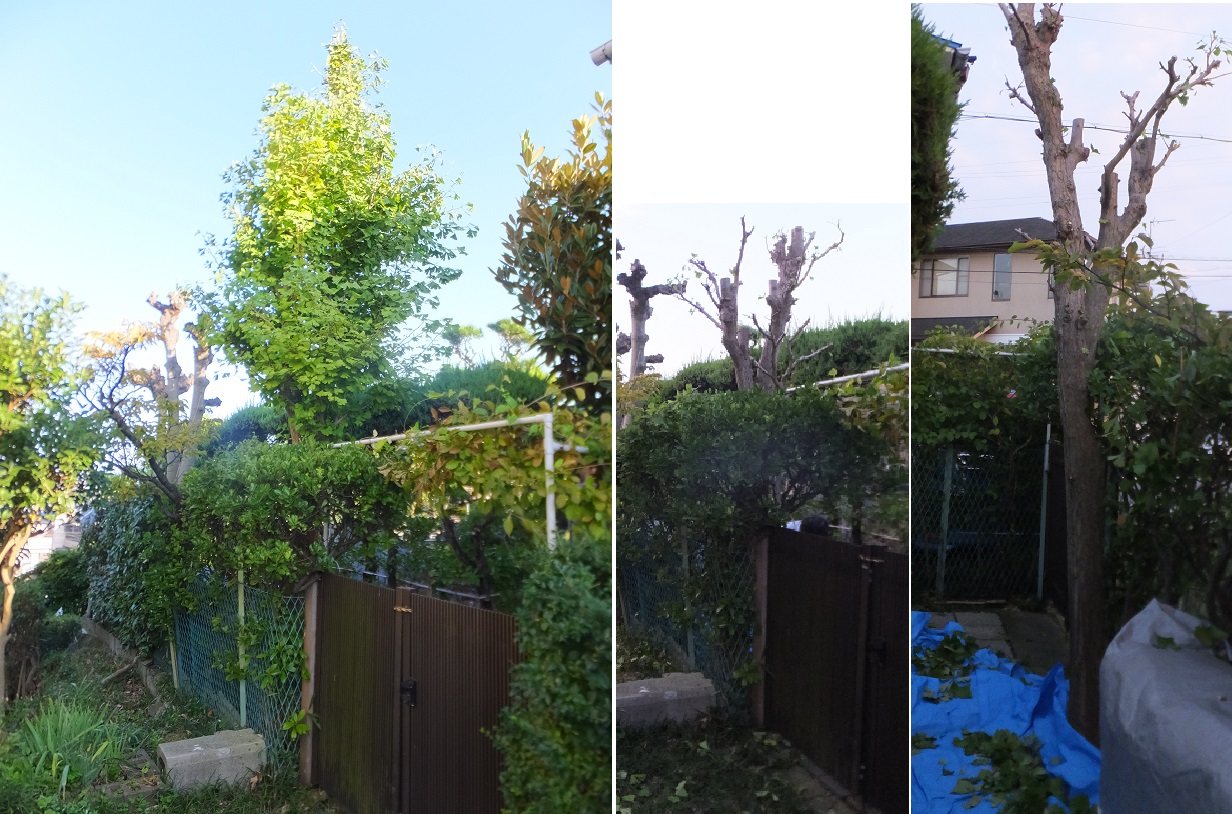 バッサリと切ったおかげで、隣の家の壁がよく見える。