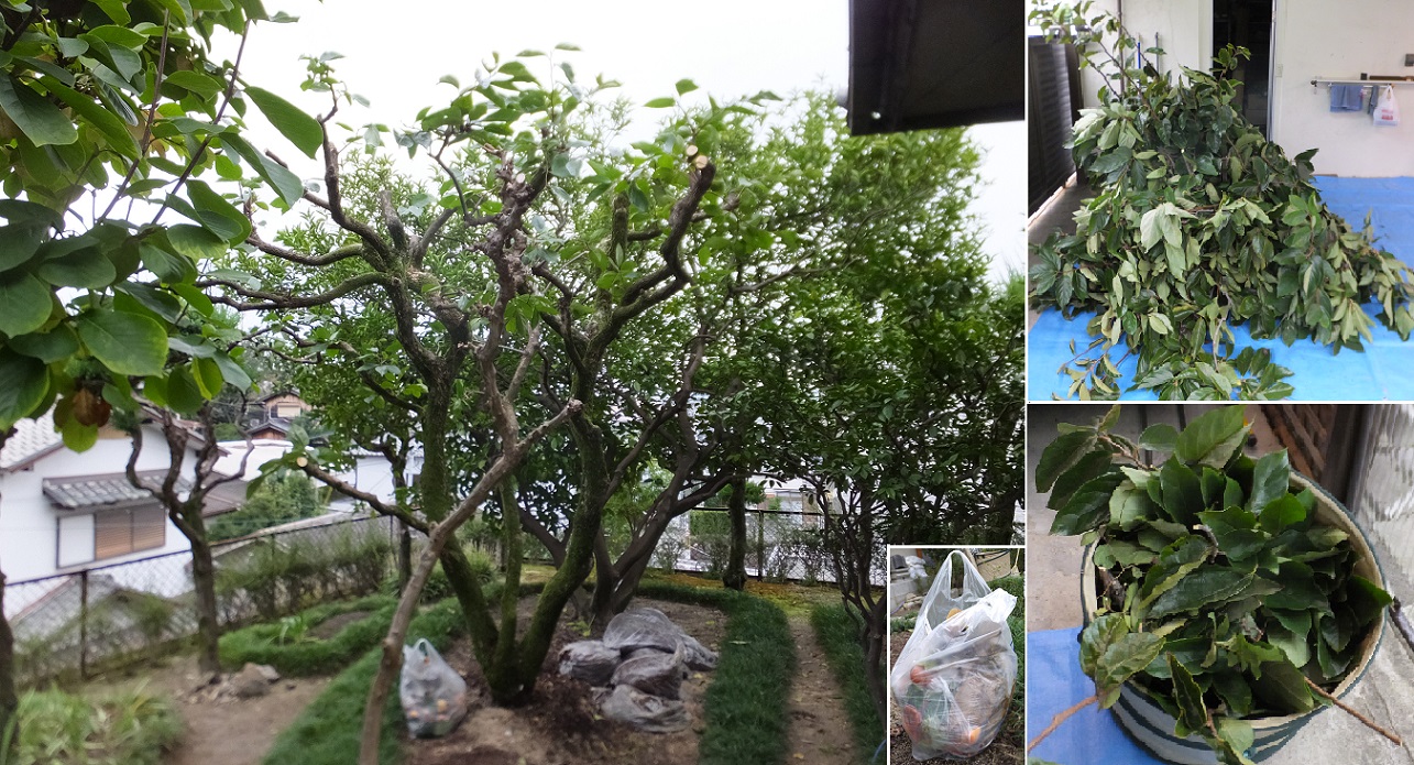 剪定:カリン・ツバキ 月桂樹