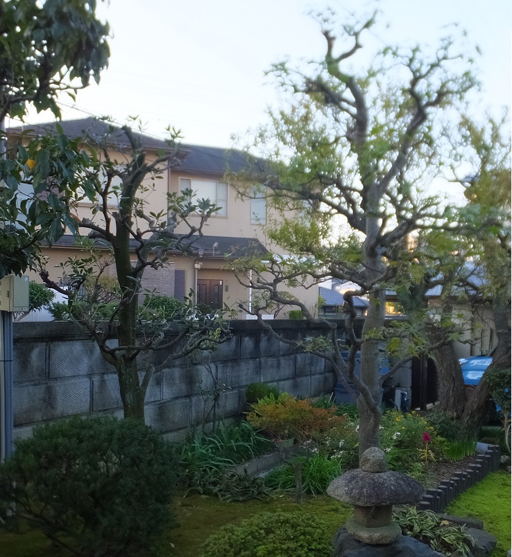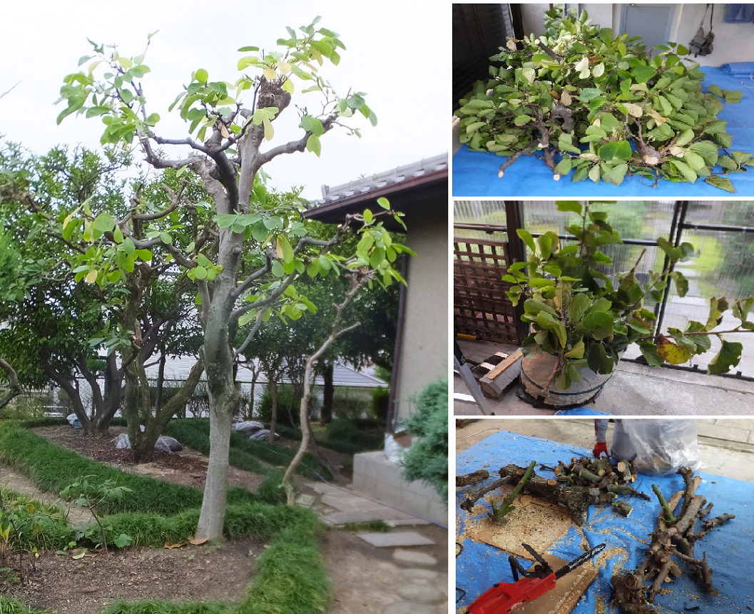 朝7時半過ぎから、剪定を始める。柿の木の前にある花モクレン。剪定の時期ではないが、柿の木の剪定の跡と比較すると、うっそうと茂っほこっている。