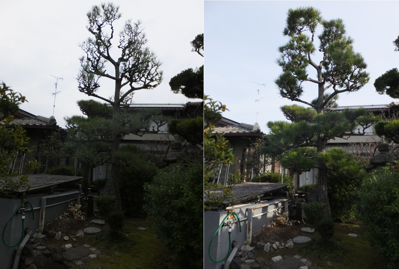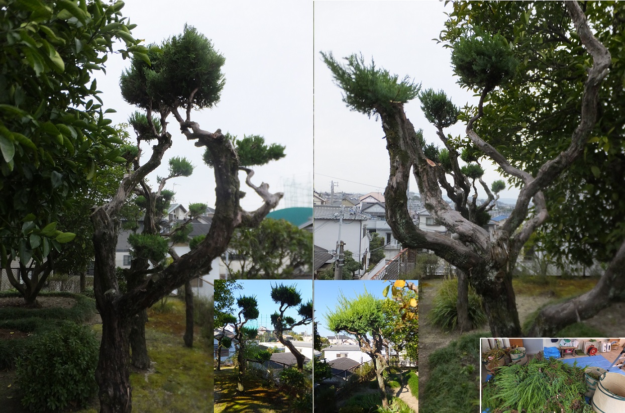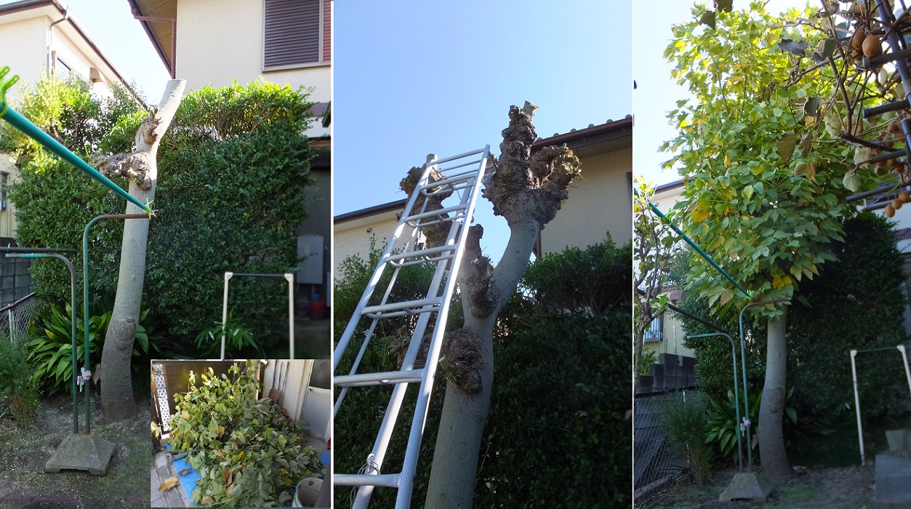 今までの剪定の結果の樹形である。今更反省してもどうにもならず、今年はそのままに、若干の枝の切り落としで終わった。