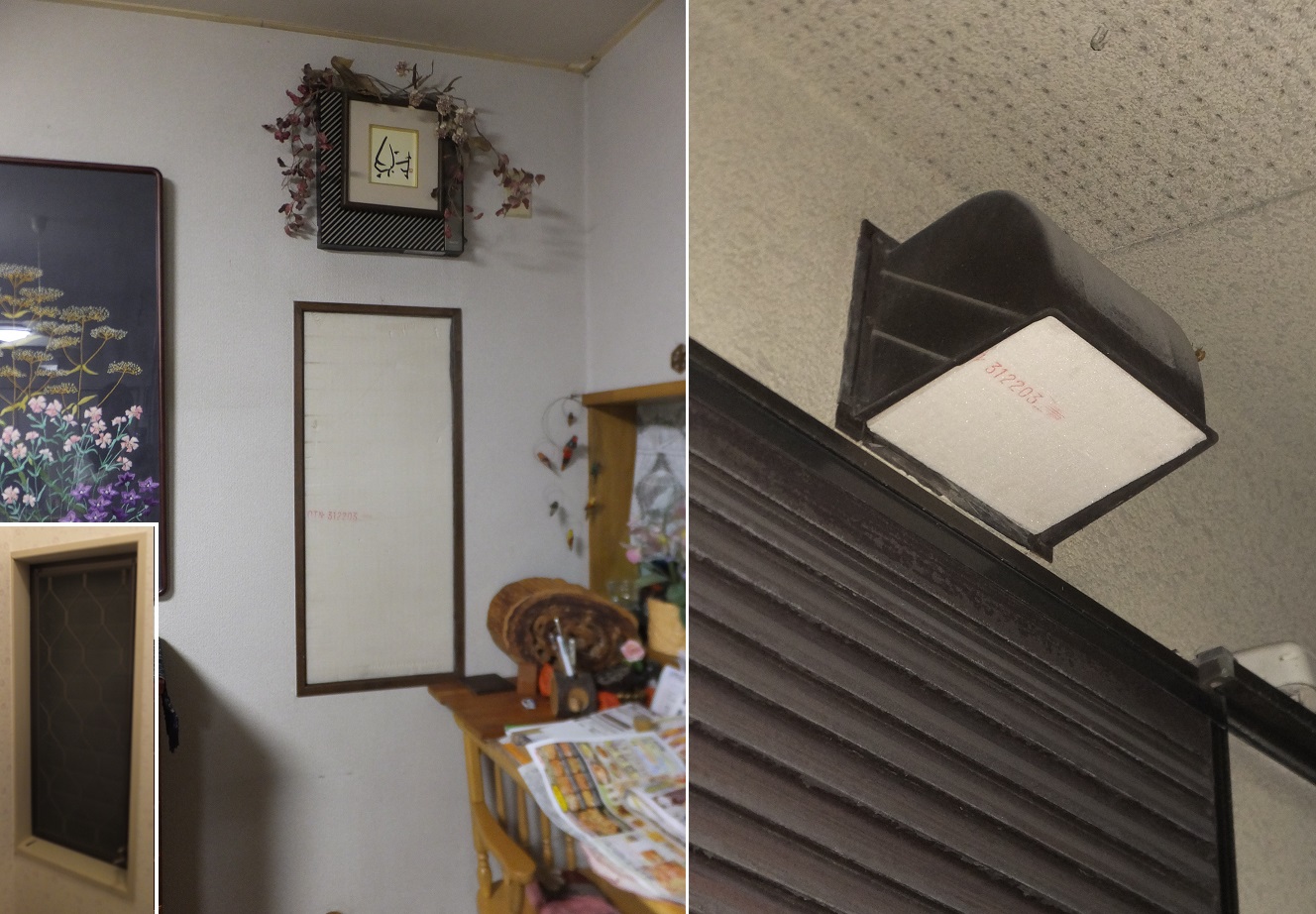 次第に寒くなる中で、離れの和室の換気扇と、リビングルームの換気扇、ジャロジーを穴埋めする。