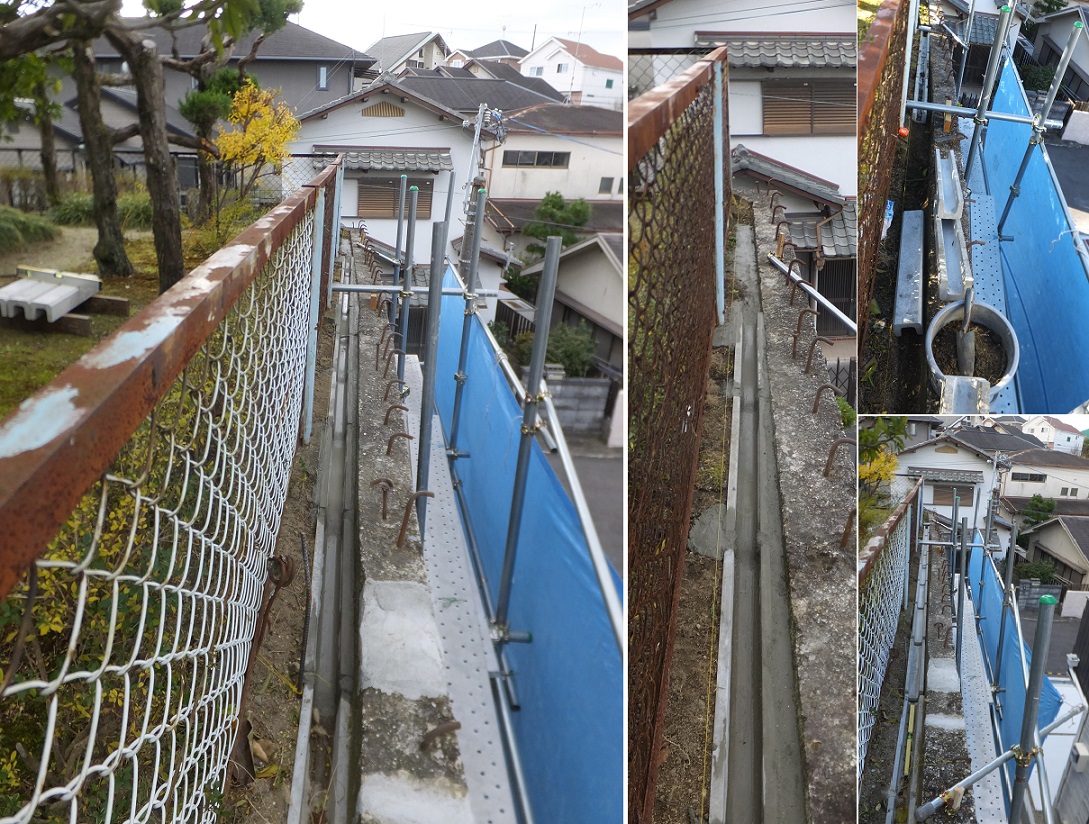 池ノ上の松で足場を組むタイミングで側溝工事を。