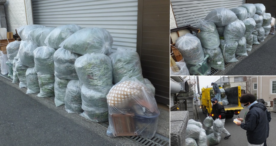 最終の松を含めて、肥料にならない枝葉をごみ袋に入れて保管。一気にごみ収集をお願いした。数は30個。毎年恒例の行事となりつつある。