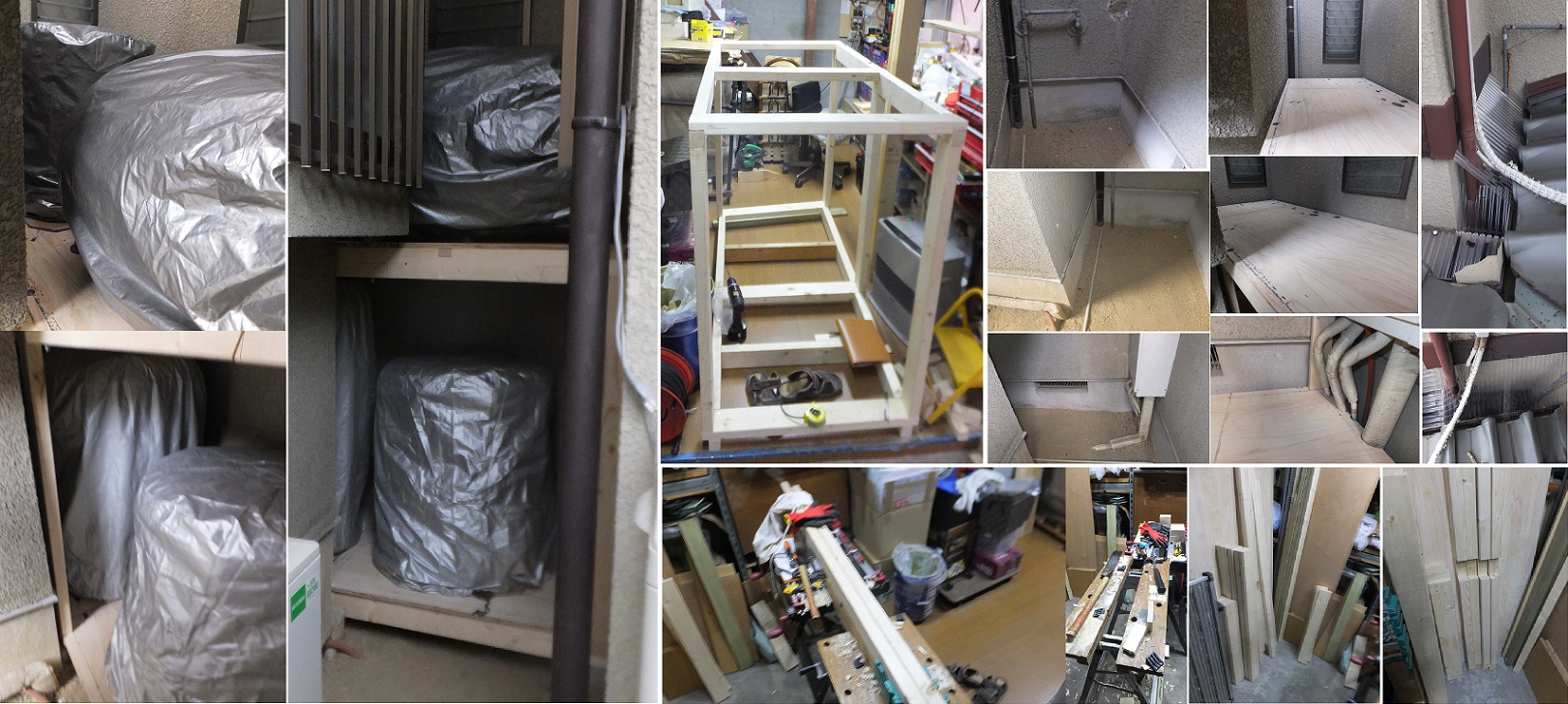 タイヤ置場が出来上がったので、おいてあった出窓下の置き場に丸管の保管場所と、ベランダ用物置の保管場所にして、整理整頓を行った。