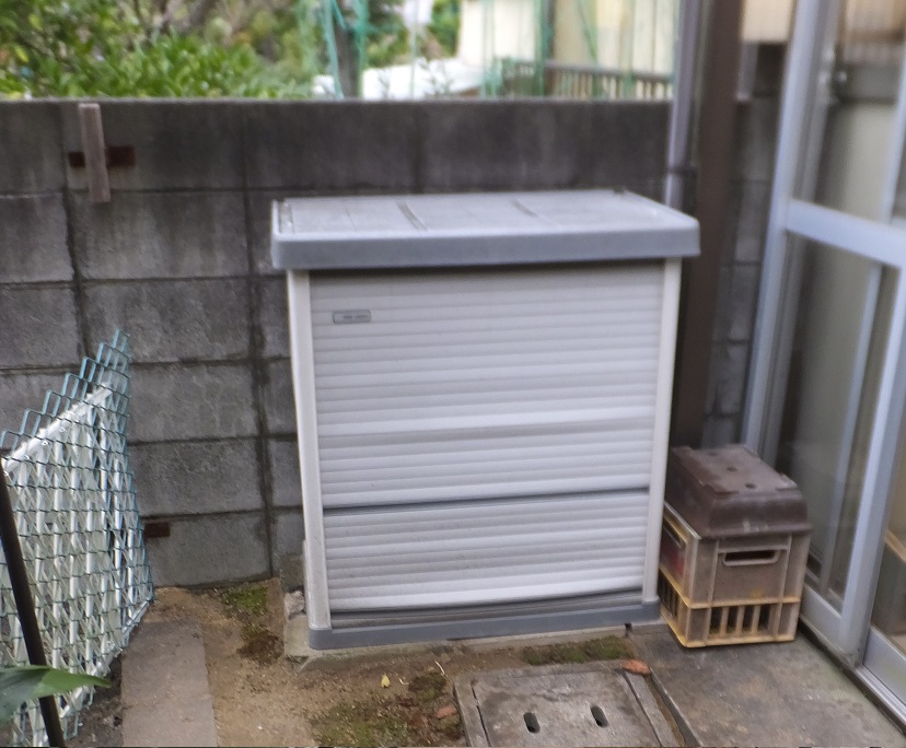 おふくろが肥料置場にしていたプラスチックの物置。中を整理するとほとんど空っぽになった。