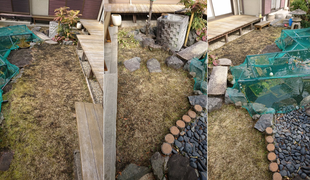 庭にベランダを製作したので、かなり小さくなった芝生。年に二回から三回ほど芝刈りをするぐらいの手入れしかしなかったが、温かい日中、何となく見て思ったのが、「野焼き」