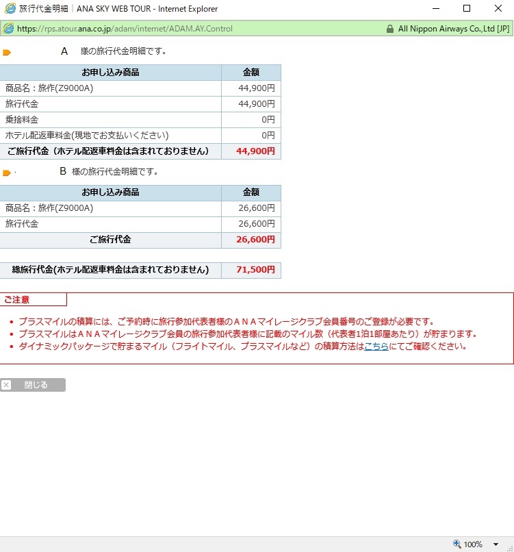 いつものように飛行機の予約から。 往復の運賃を切り詰めるためと、向こうでの足を確保するためにANAの航空券+宿泊の旅作を利用している。