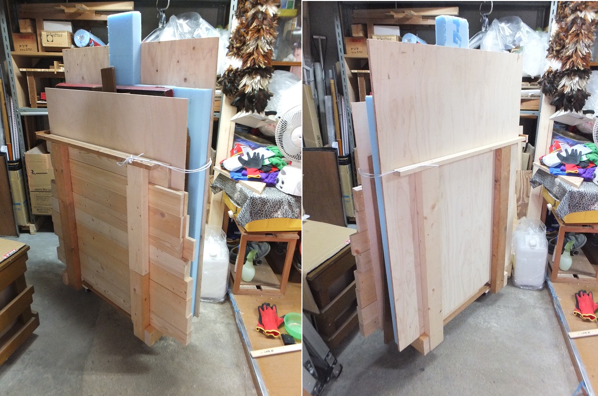 ガレージのバイクを置く構想で、以前使用していた木材沖カートを一回り小さく再作成した。