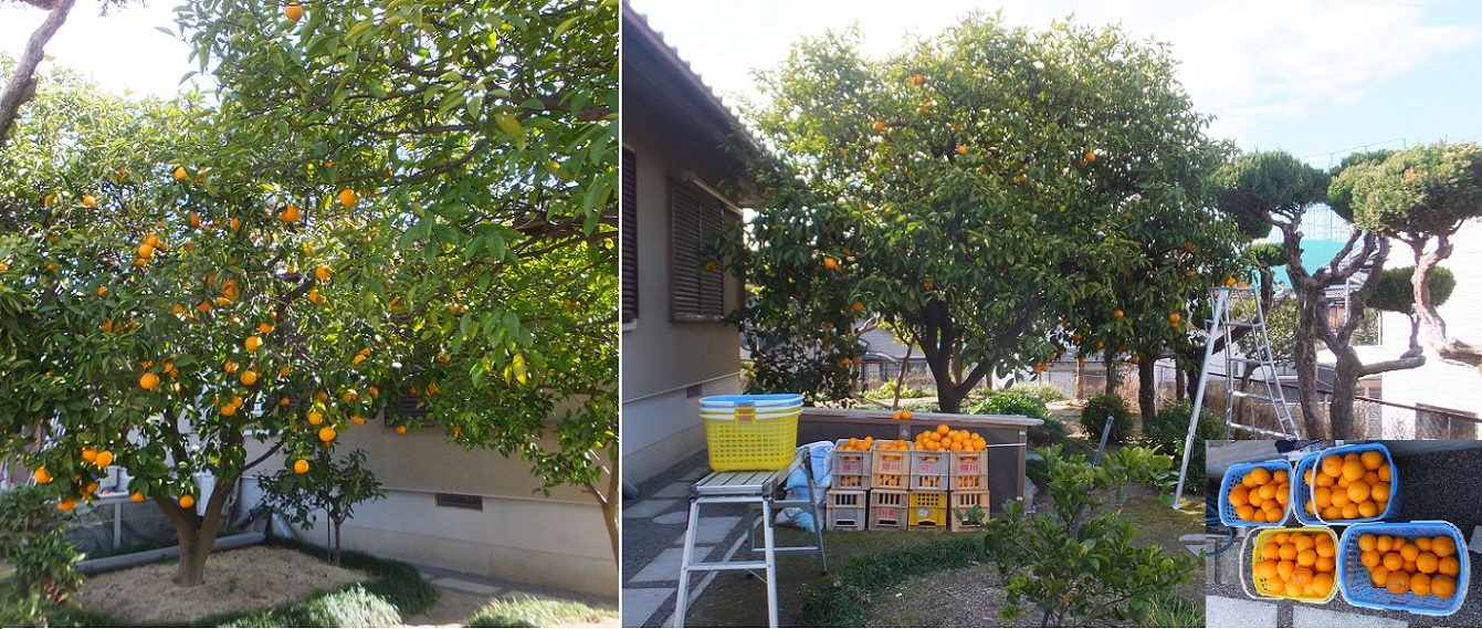 家の裏に八朔の木が3本ほど植わっている。その中の2本が大きくなり、三脚でないと取れないぐらいの大きさになったいる。