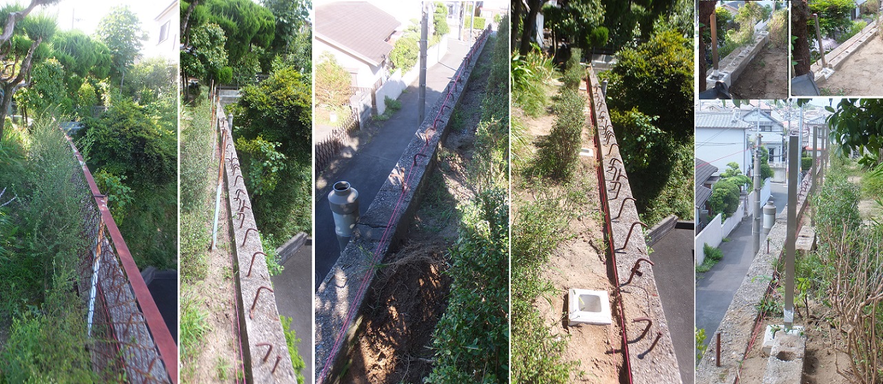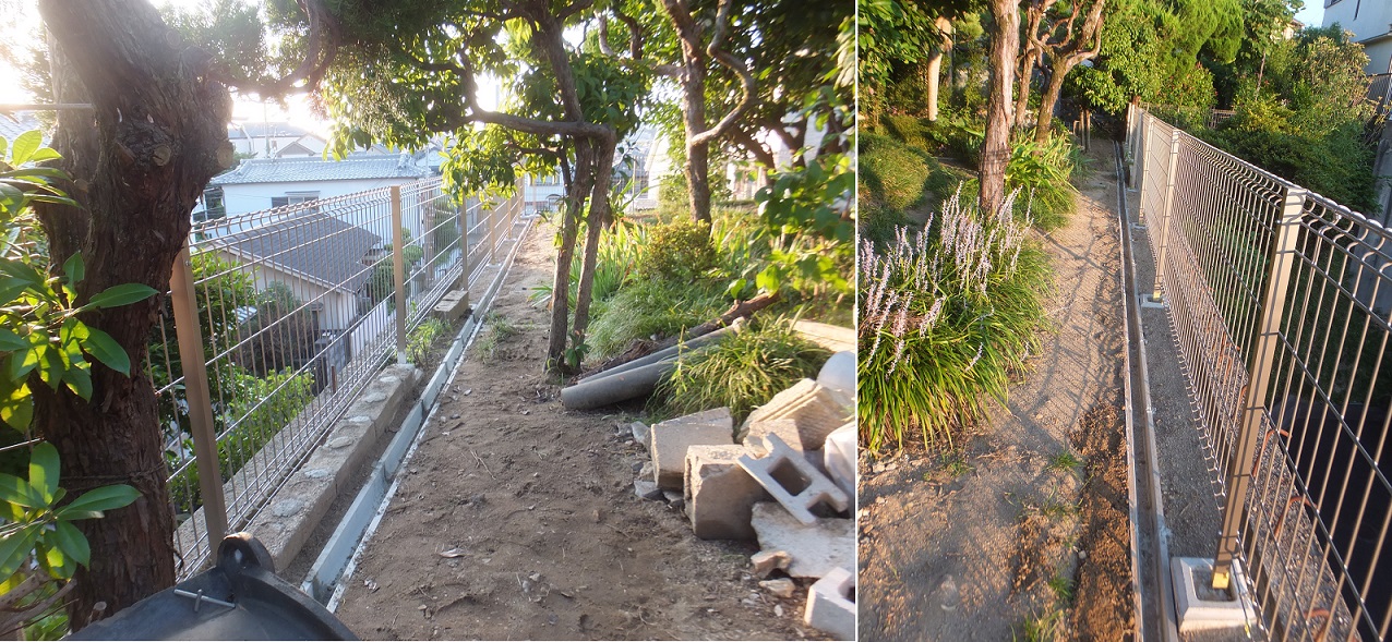 側溝のコンクリート詰めがおわり、フェンスがほぼ完成
