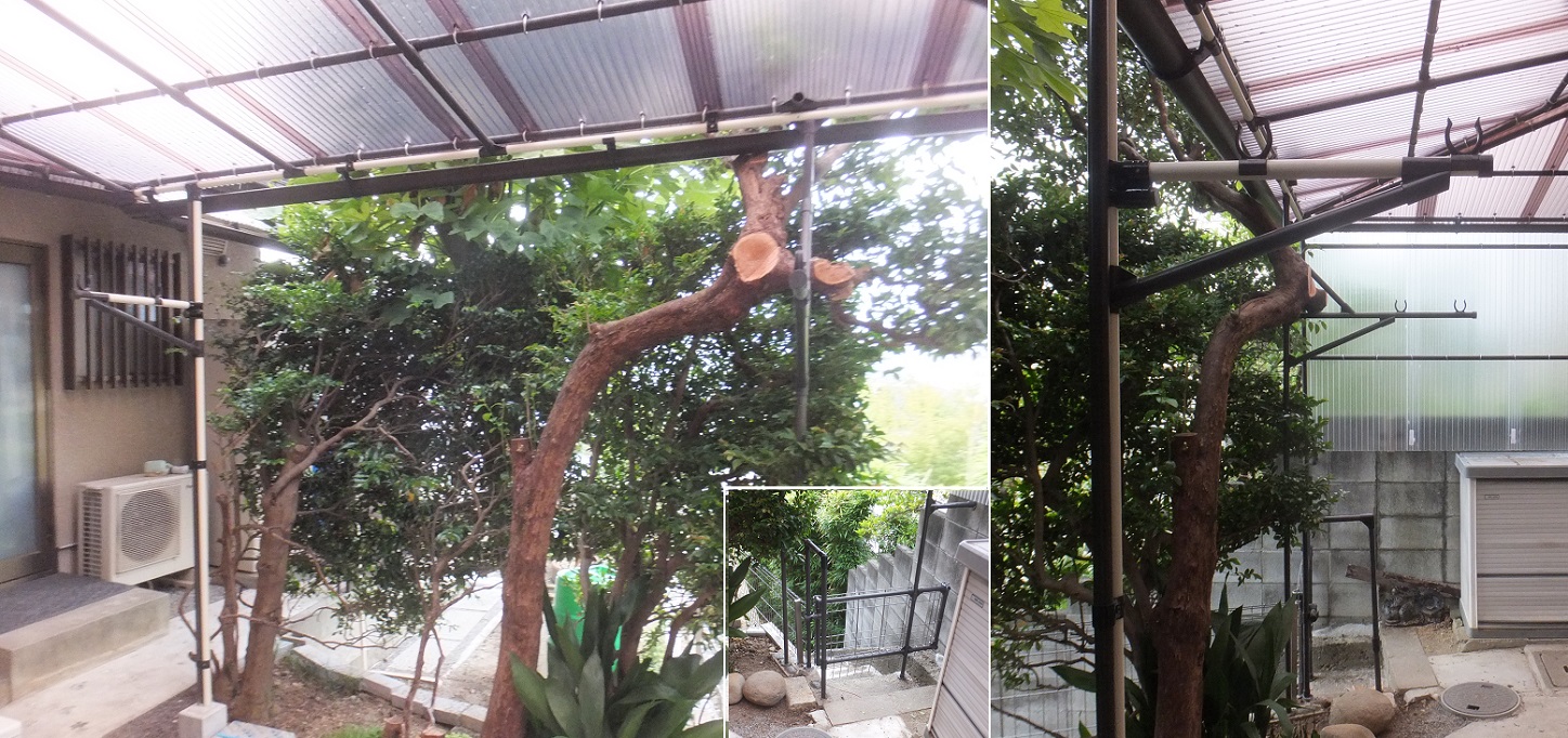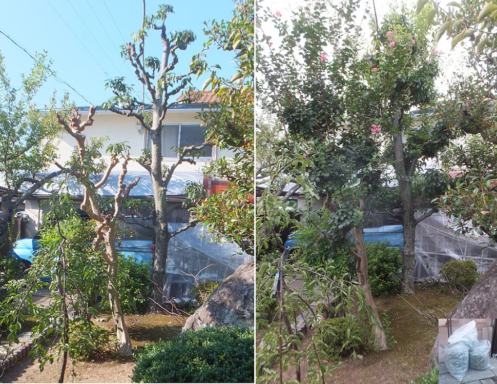 百日紅の花が散り始めで剪定を始めるのだが、今年は若干早くて剪定を始めた。