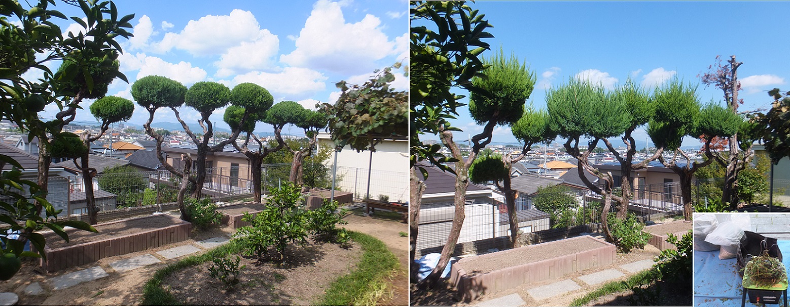 菜園の植え付けを前にして、その前に、剪定を澄ましておこうと、いつもなら一番最後になる裏のカイズカイブキを剪定した。