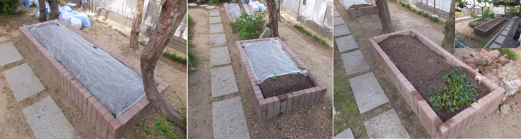 イチゴの菜園と合わせて、冬野菜の植え付けを行った。